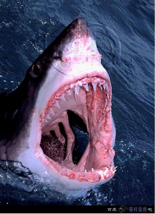 (鲨鱼其实胆子很小的,惧怕人类;只有进入了它们的领地才会被攻击。)8.巨齿鲨如果现在还活着,应该是这样的。它是地球历史上具有最强撕咬力量的物种之一,其牙齿撕咬力量甚至超过了霸王龙。