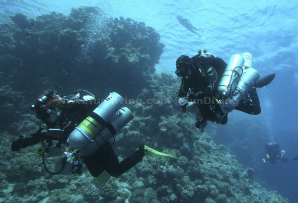 3.穿上装备,在BCD完全泄掉空气後,慢慢的增加配重,直到你能够很自然很缓慢的下沉。