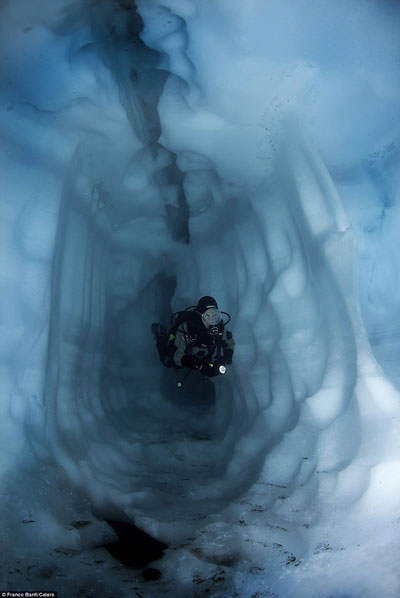 水下迷宫:摄影师佛朗哥-邦非在冰川之下的洞穴和通道中进行勘测