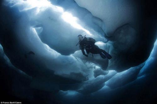 瑞士潜冰摄影师冒险拍摄水下冰川迷宫美景