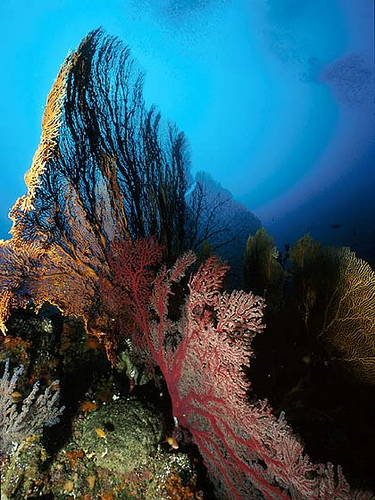 这里拥有超过20的潜水点,所以在韦岛的潜点里,您可以轻易看到比人还高的海扇花园、未受破坏的珊瑚花园、成群的Jack Fish、丰富的珊瑚鱼群;同时也有大迁徙的大型动物,如蝠鲼,海洋鲨鱼和较大的哺乳动物如海豚和鲸鱼。也有种类繁多的微距生物,如Mantis Shrimp, Frogfish, Lobster, Nudibranches、teddy bear crab等,物种的多样性,让各类水摄爱好者都能找到自己的所爱。这里还有海底温泉-Hot Spring潜水点,让您体验一下热水从海底冒出来的非一般感受。
