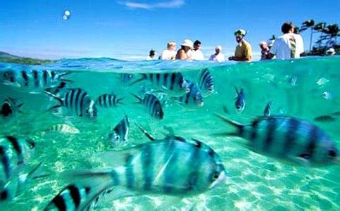 你不必领有潜水执照便可饱览斐济多采多姿的海洋世界,因为所有岛屿都被珊瑚礁包围,到处都有美丽的浮潜地点。不谙潜水者也别担心,在近海浮潜就大有看头,到离岛距海岸几百公尺的浅海处就能看到珊瑚礁岩,热带的数量也很可观,有时你会发现被成群的包围。