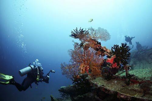 旅客还可在瓦图雷雷岛〈Vatulele〉享受别开生面的体验─沉船潜水。为了让旅客有最佳的体验,也深知潜水者认为沉船探险最为刺激,岛主买了艘旧船「嫉妒者号」,将它拖到瓦图雷雷岛弄沉。它躺在珊瑚礁的边缘,因为船体仍完好如初,潜水者能抓紧桅杆,游过船身。这对潜水者而言,是难得的刺激体验。斐济和外界距离遥远,数千公里的珊瑚礁,仍是人迹未至,旅客仍可在出游时发现处女地。海水水温终年保持在28度,水中能见度可达60公尺,斐济的观光客尚未饱和,难怪斐济会赢得潜水乐园的美名。