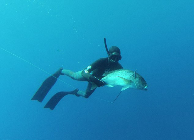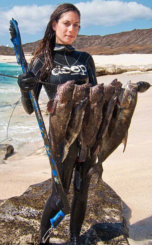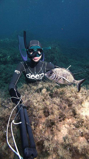 经过四年半的练习,她的潜水和捕鱼技巧与日俱增。