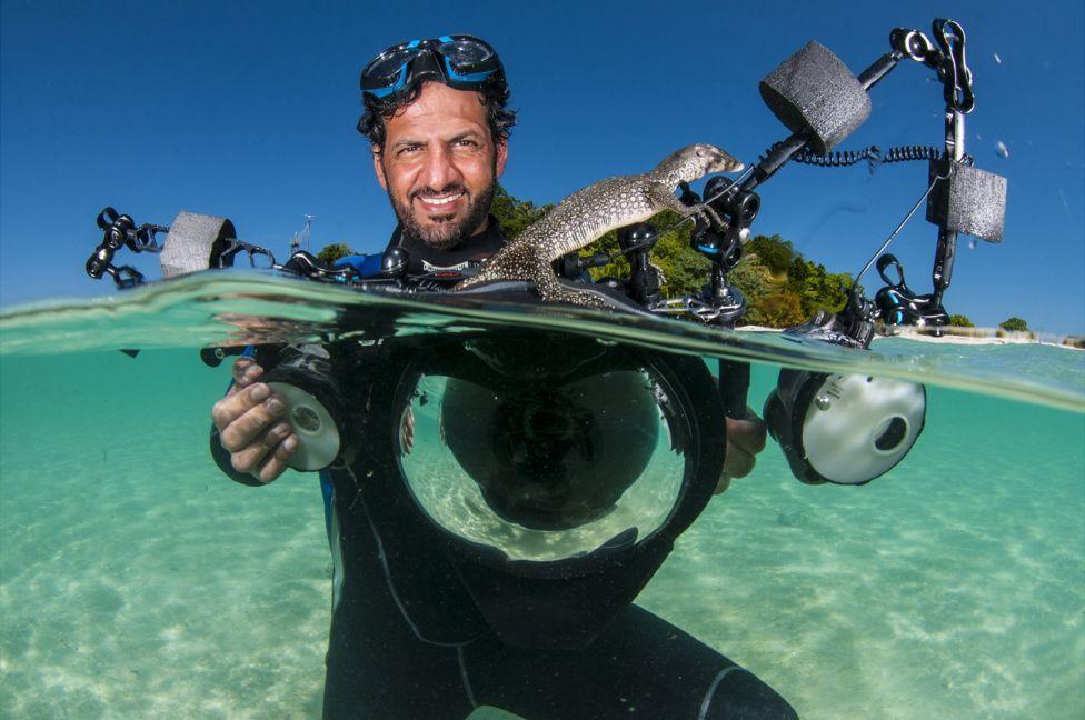 阿里的父辈和祖辈都是职业采珠人,因此他从小就是在水里长大。阿里在18岁时得到了自己的第一个相机,但是他直到十年后才想到把潜水技巧和摄影相结合,这之后就一发不可收拾、佳作频出。阿里渐渐拓展自己的摄影版图,在马来西亚的西巴丹岛他遇到了一条不愿离去的水巨蜥。