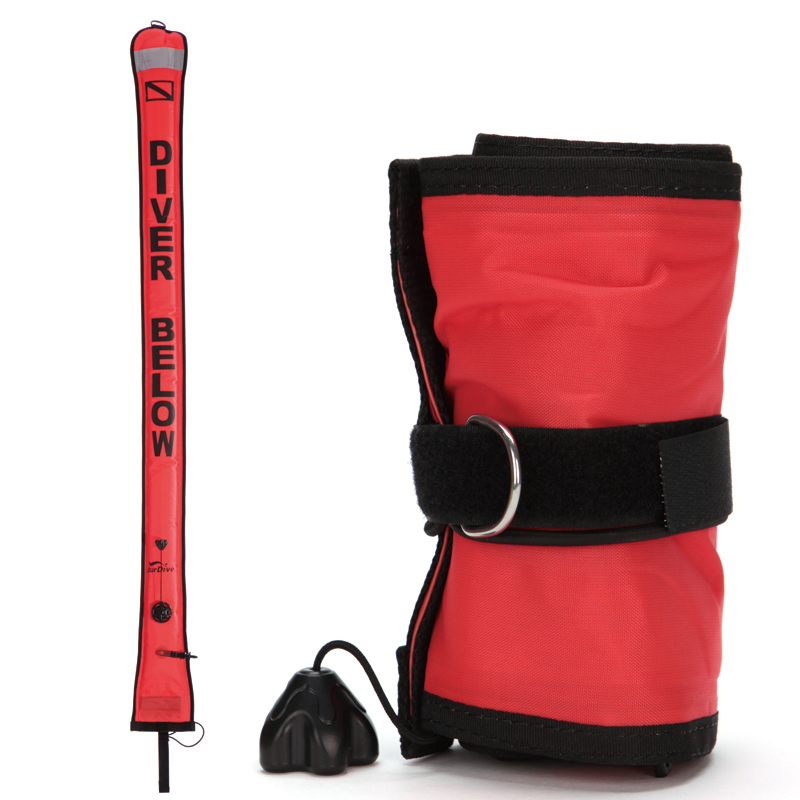 这种浮标由于体积大,不便于携带,需大量空气释放,所以通常只在固定潜水区域、离岸较近的开放水域教学、浮潜的时候使用。