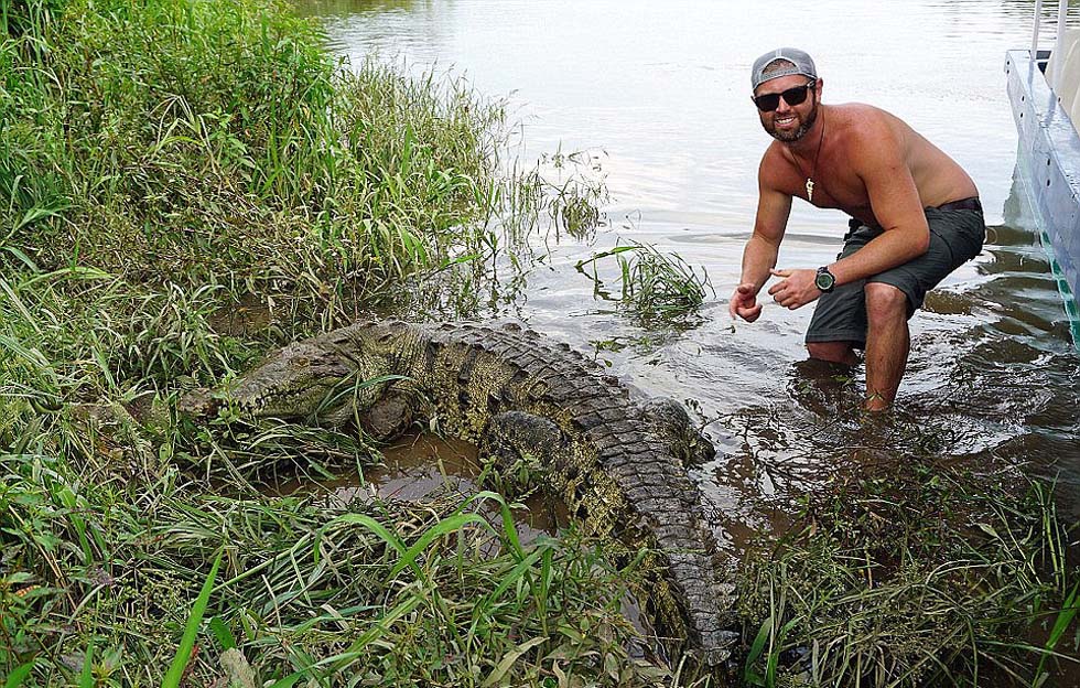 贾伦特与鳄鱼合影