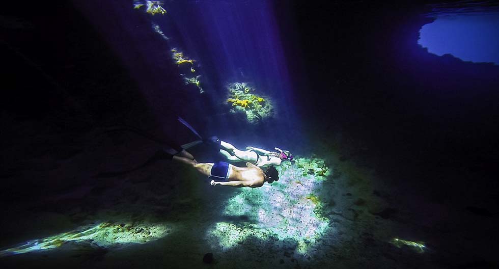 潜水到一个海底洞穴也是他们的婚礼行程之一。