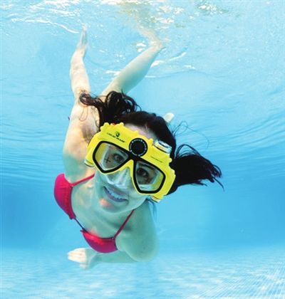 这款和潜水镜合二为一的DigitalCameraMask潜水镜数码相机超级方便,戴在头上就能使用,而且照片、视频通杀。的十字标识会告诉你取景的中心,摁下快门就搞定。你可以空出双手来仔细探索水下世界。