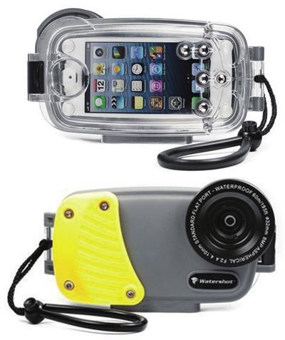 5/5s专用防水保护壳,可以在水深60米使用。保护壳特别为拍摄而设,提供两组包括110度阔广角镜头可以更换。Water-shotPro附带对应的App,方便用户在加装保护壳后使用。