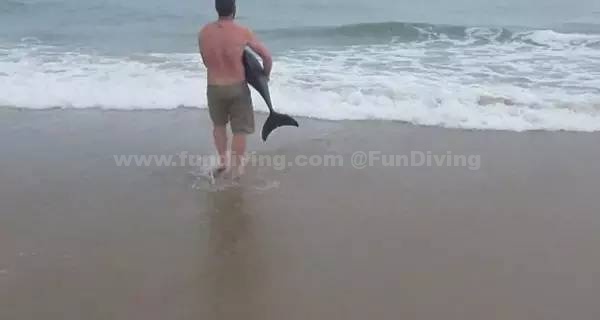 当他把海豚抱回海里的时候,海豚似乎还花了好一会儿才反应过来自己在哪儿,在水里游动了一会儿之后,才像子弹一样游走了,走之前还不忘摇着尾巴向诺德致谢。